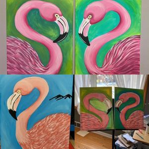 On Valentine's Day we painted these lovely Bolivian Flamingoes! Thank you to artist Shawnee Hoffman for leading the class!